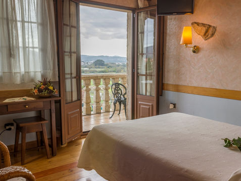 Our beautiful route starts from Caldas de Reis as we cross the ancient bridge over the Umia River, leading us to the fountain of the thermal springs. Our route passes through areas rich in water sources, making them green and rich in vegetation. We will end the day in Padron, where the remains of Saint James' body were brought in 44 AD, and where cultural and historical interest abounds. Today, the town is also famous for its delicious Padron peppers. This is our last stop before Santiago de Compostela.